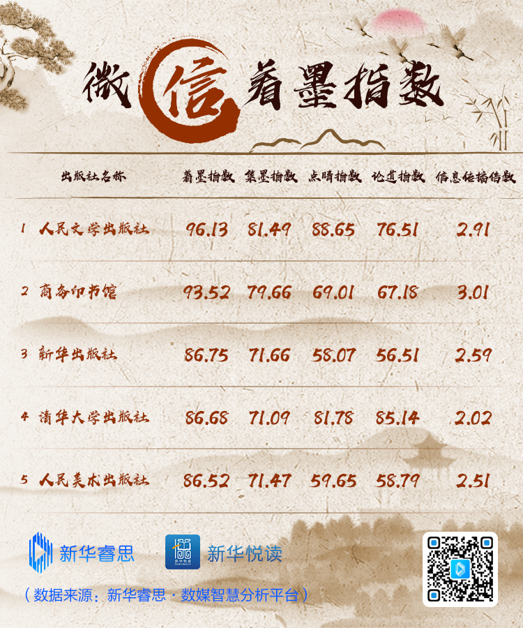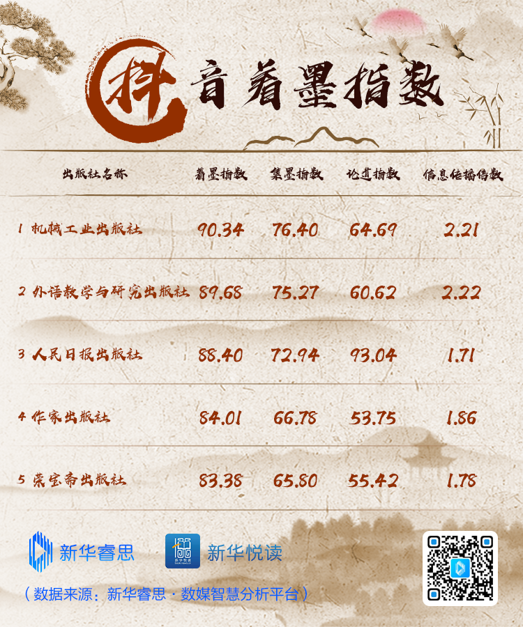 集墨指数:出版机构在该平台的相对信息发布量级。
