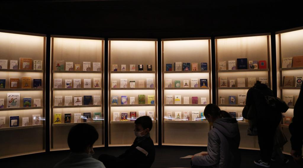 2月23日,人们在法国巴黎装饰艺术博物馆举行的“遇见小王子”展览上翻看不同版本的《小王子》。新华社记者 高静 摄