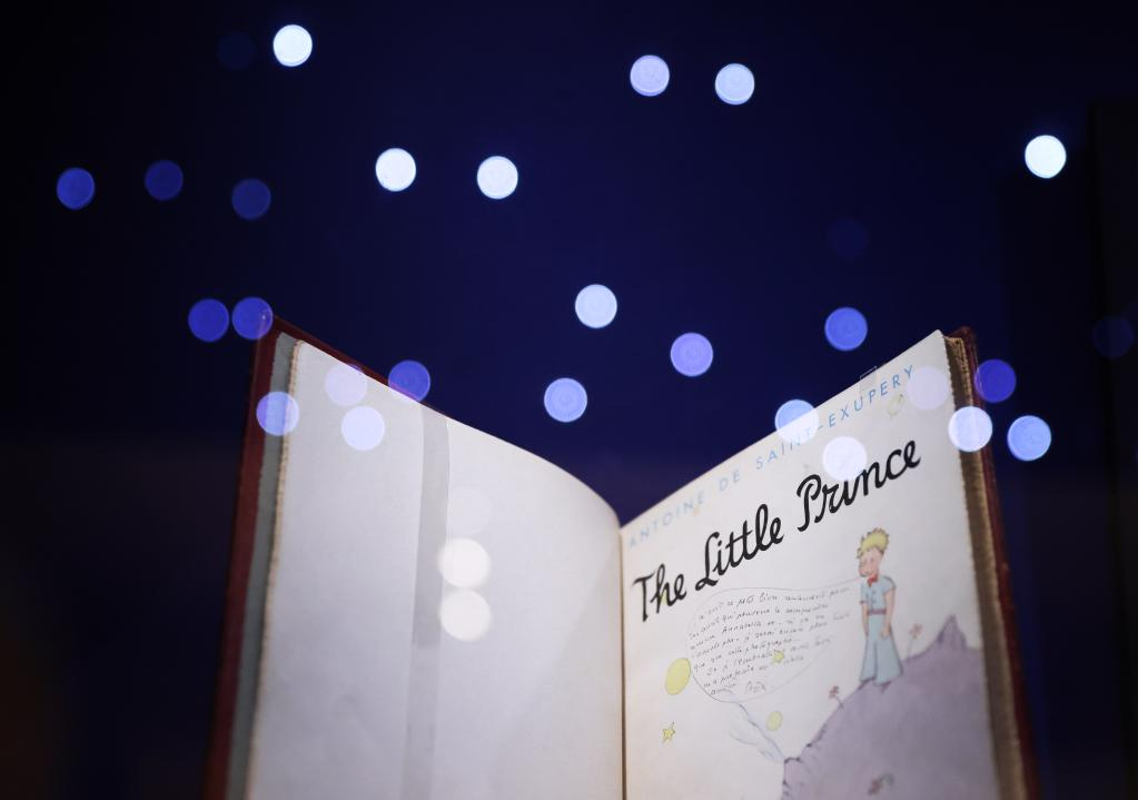 这是2月23日在法国巴黎装饰艺术博物馆拍摄的一本有作者签名留言的英文版《小王子》。新华社记者 高静 摄