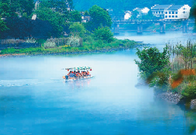 那还是在课堂上,语文老师声情并茂地吟诵:“李白乘舟将欲行,忽闻岸上踏歌声。桃花潭水深千尺,不及汪伦送我情。”这让我对桃花潭有了最初的向往。长大后才知道,关于桃花潭,还流传着一个李白与汪伦之间的故事。唐天宝年间,李白旅居徽州叔父李阳冰家,这天接书一封,是泾县好友汪伦转来,信曰:“先生好游乎?此地有十里桃花。先生好饮乎?此地有万家酒店。”面对如此诱惑,“自称臣是酒中仙”的李白欣然前往。但到了桃花潭,见山见水不见花,更不见酒旗幡立,李白疑惑不解。汪伦说,桃花是潭水之名,万家乃店主姓万,一家之店矣。李白听后仰天大笑,如此盛邀,别具一格。于是,两人把酒临风,吟诗作赋,终日相伴。