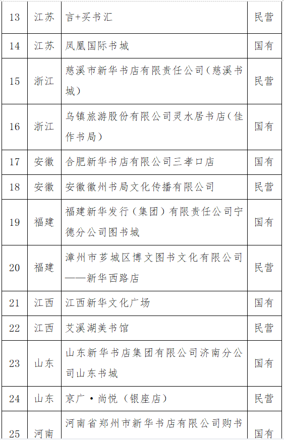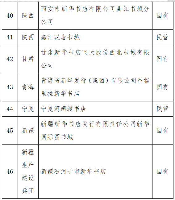 本次获得“年度最美书店”的46家书店,涵盖了全国31个省(区、市)和新疆生产建设兵团。既有新华等国有书店品牌,也有民营书店品牌;既有综合性的大型书城,也有小而精的特色书店;既有转型升级的书店老品牌,也有近几年出现的书店新面孔。它们特色鲜明,亮点突出,展现了实体书店红色传承之美、文化涵养之美、责任担当之美、业态创新之美、融合发展之美、环境设计之美,反映了实体书店近年来创新发展的最新成果和在逆境中不怕困难、奋发有为的精神风貌。