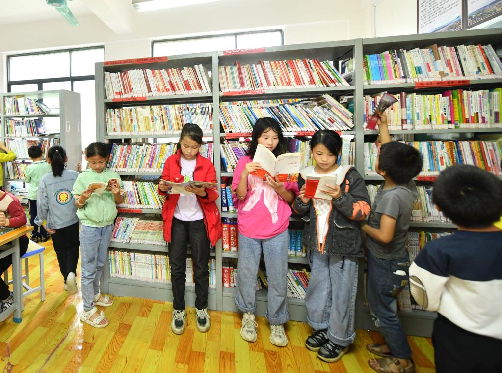 广西都安瑶族自治县大兴镇骨龙村小学位于大石山区深处,近年来,随着办学条件的不断改善,学校图书室藏书越来越丰富,每天的课外活动时间都吸引很多学生到图书室阅读或者借阅。新华社记者 黄孝邦 摄