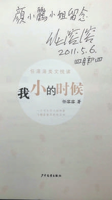 想起2011年5月6日,我和作家殷健灵到他家拜访。他很开心,说今天是他的农历生日,他说母亲每到这一天,总会给他做一些好吃的东西,现在想起来还是那么的美味。我们都知道任溶溶先生是广东人,他对美食的喜欢是天生的,加上还有一位善于烹饪美食的妈妈,那份记忆一定是永生永世都无法忘记的。当一位90后老人说起童年那份味道,还是满脸孩子的样子,我们在那个瞬间看不到一丝的老人样,也许就如老话说:不论是谁年龄几何,在妈妈的眼里,永远是孩子。他说完妈妈的味道后,就拿出几本他出版的新书,签上他的名字,也签上了他农历生日“四月初四”。