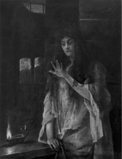 毫不夸张地说,从一开始,麦克白夫人就是那三个女巫的同党,甚至可以说是其首领,因为她既然可以呼唤妖精,自然也可以呼唤女巫。或许我们还可以把三个女巫的那些预言解读为麦克白夫人在丈夫枕边不停吹的风,因为她读了丈夫的来信后,没有表现出丝毫诧异,仿佛万事俱在她预料之中,只欠丈夫下手的决心。