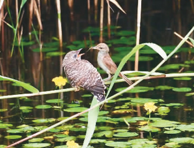 要说谁是芦苇中最聒噪的鸟类,我投东方大苇莺一票。它们奋力地“呱呱叽,呱呱叽……”叫个不停,但它们中有很多“倒霉蛋”,因为辛辛苦苦筑巢繁殖却被大杜鹃寄生了。