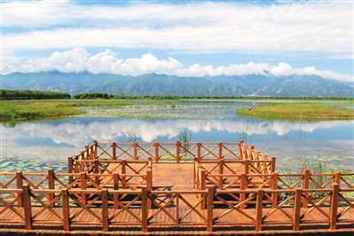 素有北京“夏都”之称的延庆,三面环山一面邻水,特殊的地理位置形成了独特的小气候,较热岛效应明显的市区凉爽很多,夏季平均最高气温只有25℃。一个假日,我和鸟友们相约,前往位于延庆西南边的野鸭湖湿地公园,既为乘凉避暑,更为在湿地欣赏自然风光和观赏各种鸟类。