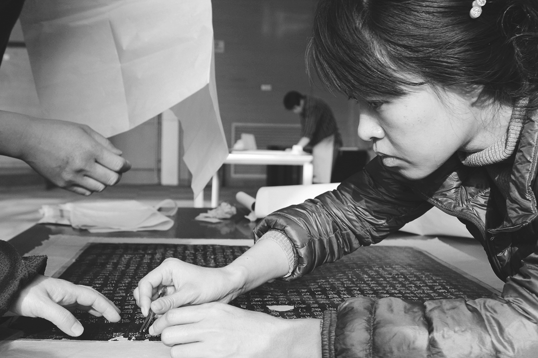 读者林先生参加“书香古韵——中华古籍之魅力”读者体验活动时学习了传拓,他用扑粉扑了十几分钟后,宣纸上的文字逐渐清晰。林先生说:“拓印很有讲究,拍打、拿捏都要到位,考验耐心。这个作品我要带回家好好收藏。”