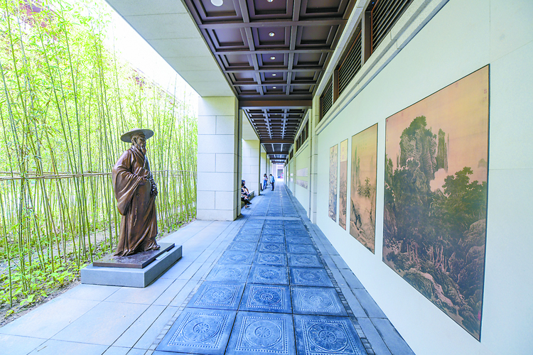 神逸廊内展示34件中国古代山水画著名版本,皆为中国绘画史上有典型代表性并收藏于国内外文博机构的经典绘画作品。以顾恺之人物和山水画卷《洛神赋图》为开端,涵盖魏晋南北朝至明清时代,遴选包括顾恺之、展子虔、李思训、荆浩、董源、李成、范宽、黄公望、沈周、董其昌、石涛等中国绘画史上杰出画家,表现中国山水笔墨风格以及人文精神的传承与发展。