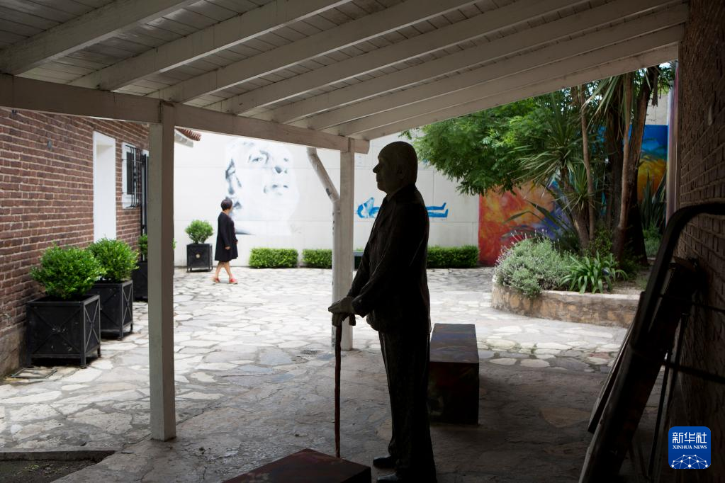 2018年11月16日,在阿根廷阿德罗格,一名游客在博尔赫斯故居博物馆参观。新华社发(马丁·萨巴拉摄)