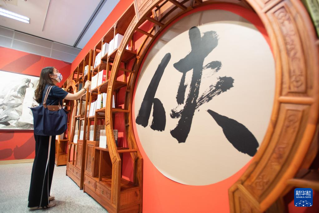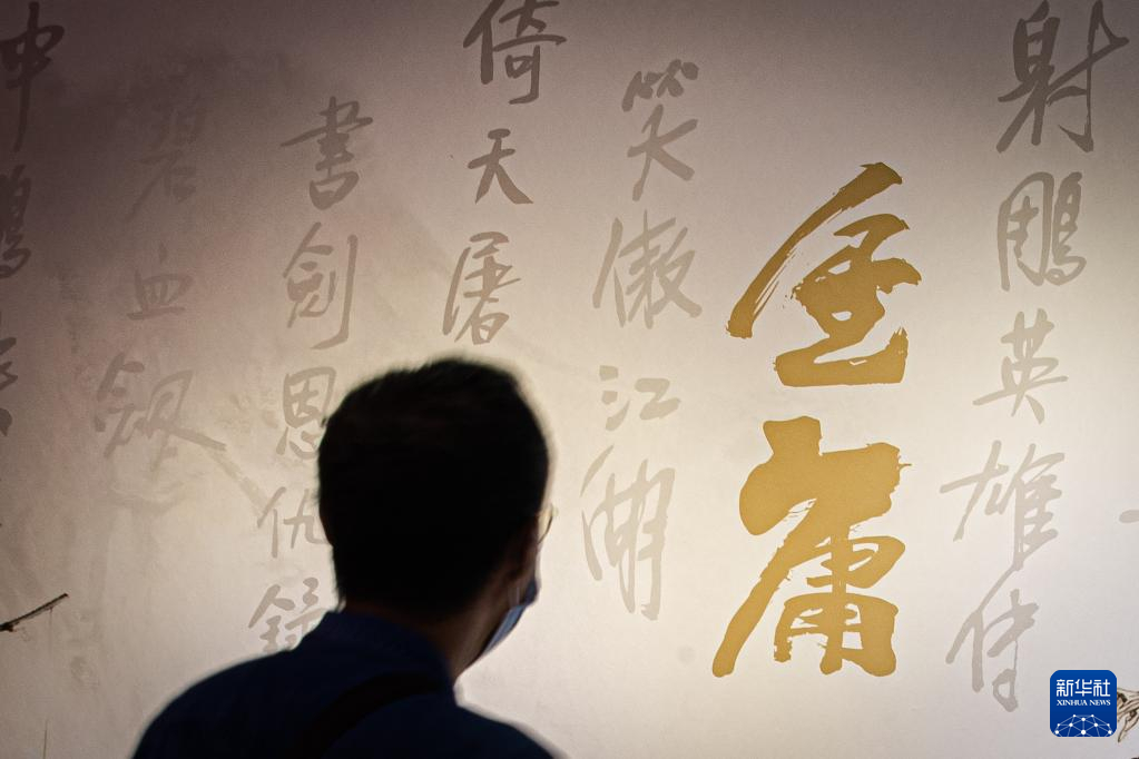 9月9日,参观者观看展出的金庸小说作品。新华社记者 肖艺九 摄