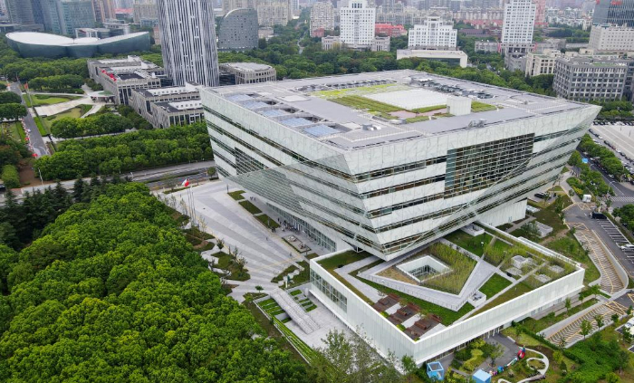 9月28日拍摄的上海图书馆东馆(无人机照片)。