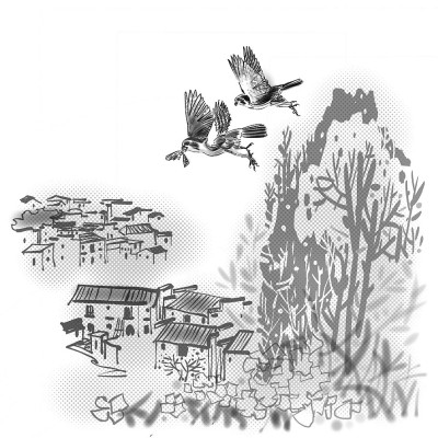 晌午,天下起了细雨,白腿小隼却不躲雨,而是站在农家飞翘的檐角,静静地沐雨。羽毛湿了,它抖落一下身子,继续沐雨。雨细细地斜拉着,山林静穆、迷蒙。享受了一阵细雨,一个斜飞,它飞向古樟树。
