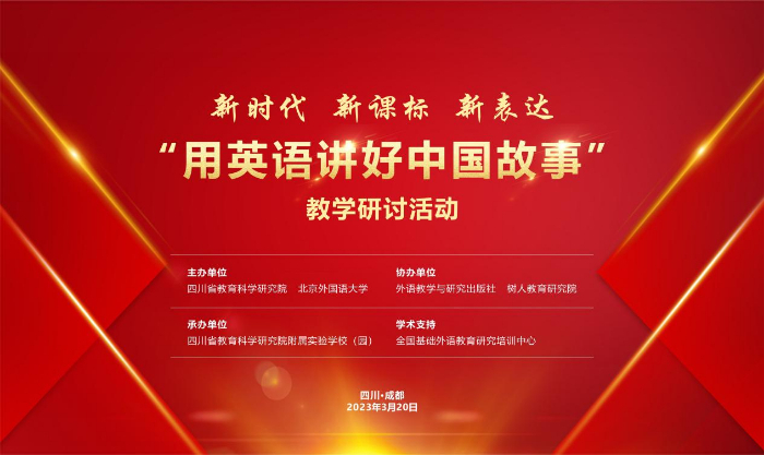 3月20日,新时代、新课标、新表达——“用英语讲好中国故事”全国中小学英语教学研讨活动在成都开幕。该活动由四川省教育科学研究院、北京外国语大学主办,全国基础外语教育研究培训中心提供学术支持,外语教学与研究出版社、重庆树人教育研究院承办,四川省教育科学研究院附属实验学校(园)协办。