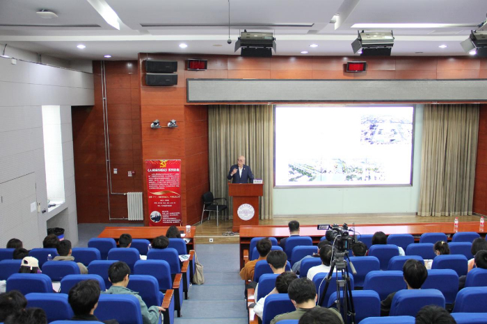 孙希磊引用唐代诗人杜甫《茅屋为秋风所破歌》一诗中的诗句——“安得广厦千万间,大庇天下寒士俱欢颜”,引出北京建筑大学的初心使命和百年校史。他介绍了北京建筑大学培养“三师”型人才服务首都建设发展的使命,和大家一起探讨“作为一名北京建筑大学的学子,应该怎样溯流而上,成为一个大国工匠?”这一命题。同时,孙希磊对同学们深刻领会“人民城市”的内涵要义、更好成为“未来的规划师、设计师、建筑师”,提出了希望和建议。
