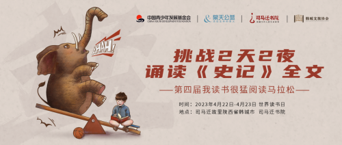 2023年4月23日,是第28个世界读书日。为了更好地倡导全民阅读,中国青少年发展基金会、幕天公益、司马迁书院、陕西省韩城市文化和旅游行业协会联合发起第四届我读书很猛阅读马拉松活动,于22日至23日期间在司马迁故里陕西韩城发起一场近51小时的阅读马拉松慢直播,接力朗诵52万余字的《史记》原文,希望更多人能够享受长时间的沉浸式阅读,品读传统经典的韵味。