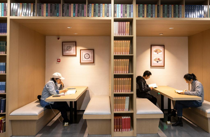 4月23日,市民在浙江省诸暨市陶朱街道浣江书房金石学馆看书。新华社发(郭斌 摄)
