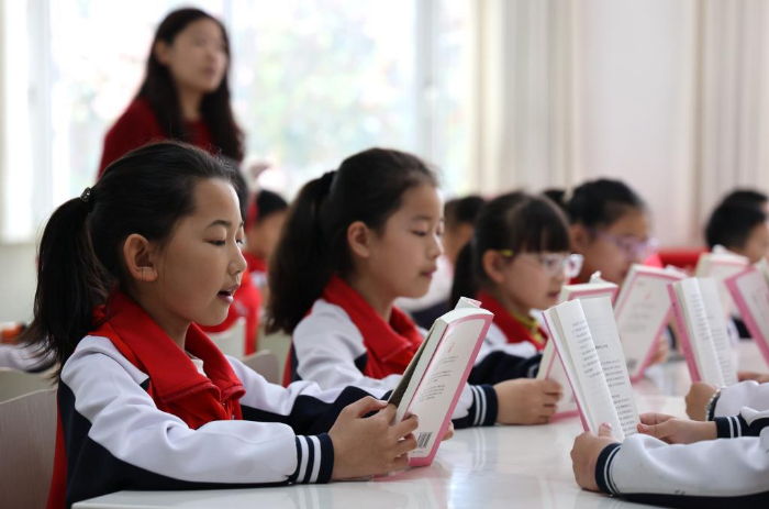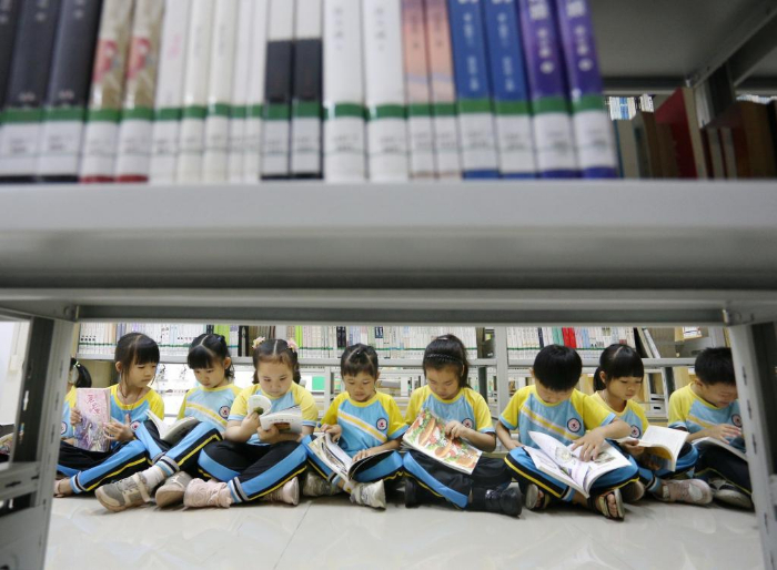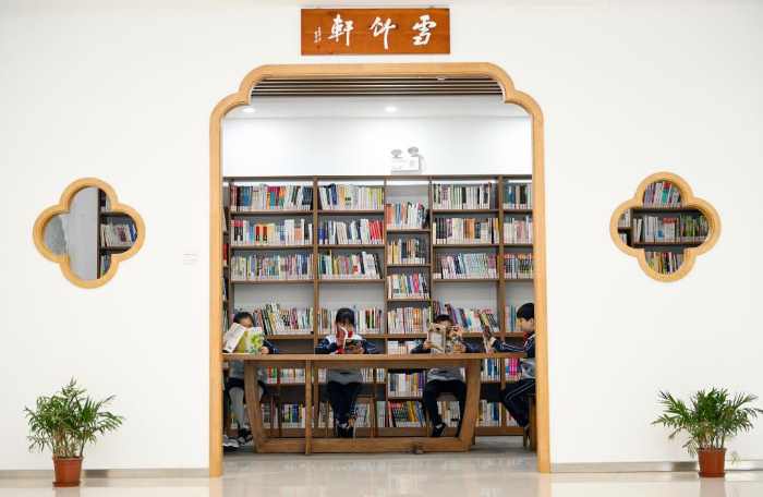 4月21日,学生在江苏省苏州市昆山开发区震川小学图书馆阅读。