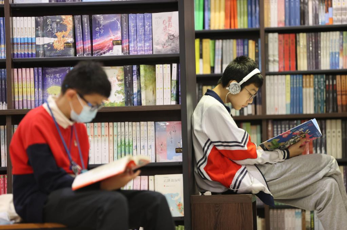 4月22日,学生在福建省厦门市思明区一家书城阅读书籍。