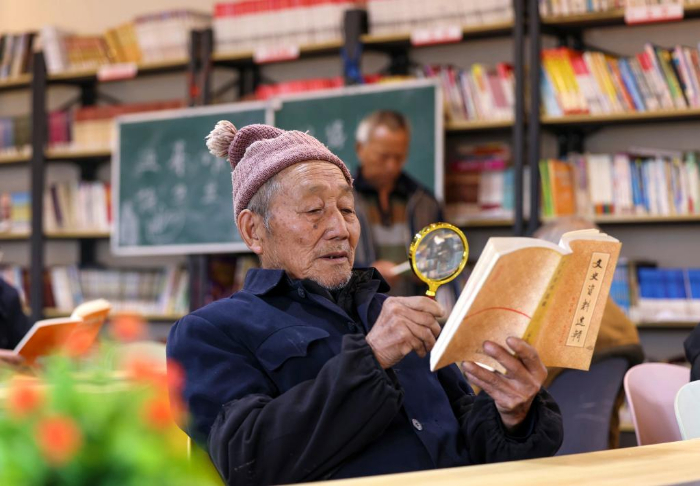 4月22日,村民在贵州省黔东南苗族侗族自治州岑巩县水尾镇驾鳌村图书室阅读。