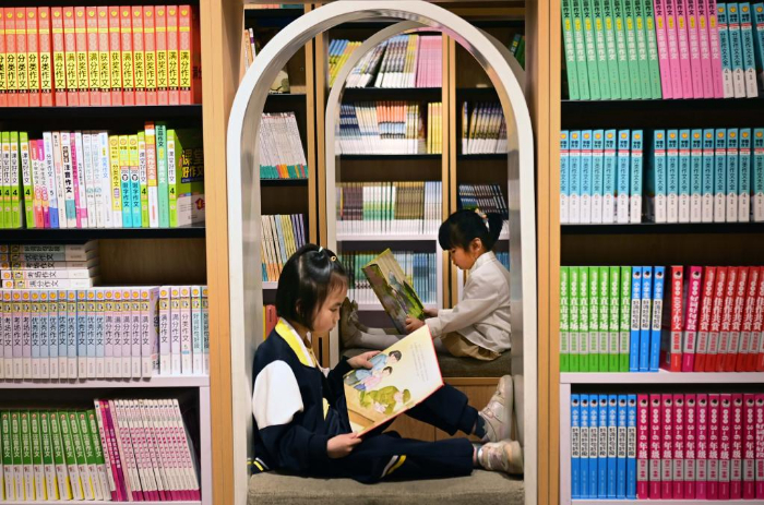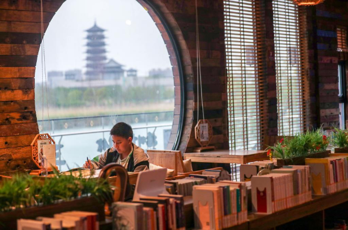 4月23日,市民在江苏省泰州市几何书店阅读书籍。