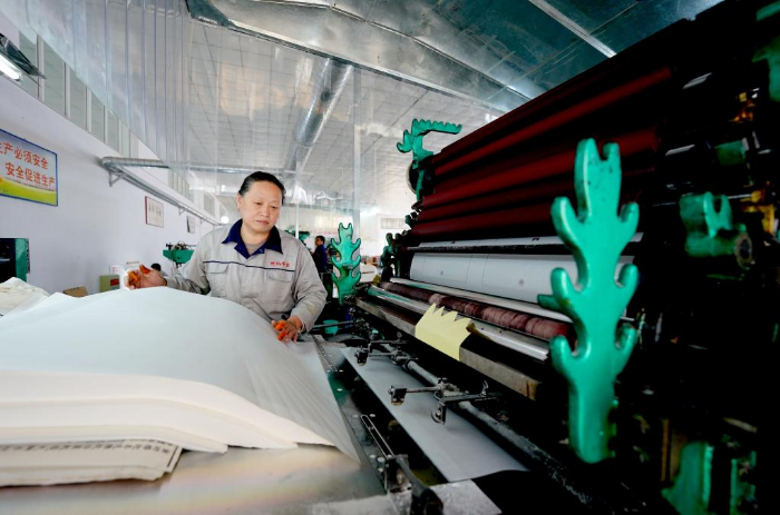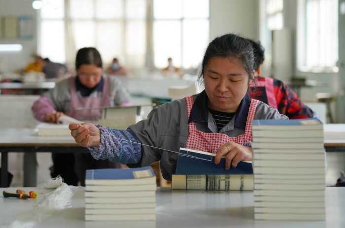 齐栏、打孔、穿钉、包角、包面……经14道传统工序,一本线装书就制作而成。在河北省南宫市一家古籍印刷厂车间,一沓沓线装书散发着淡淡的书香。