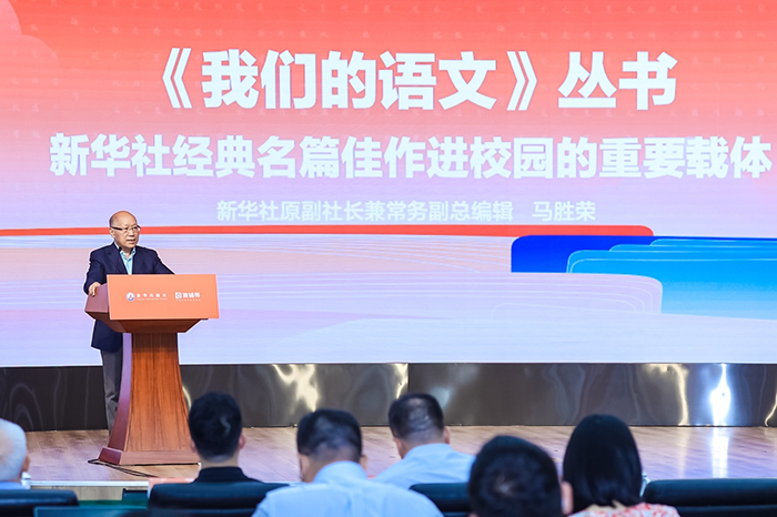 新华社原副社长兼常务副总编辑马胜荣在主旨演讲中表示,新华社九十余年来产生的经典名篇佳作从一个侧面真实生动书写了在党的领导下,中华民族迎来从站起来、富起来到强起来的伟大飞跃,是塑造青年、培养社会主义建设者和接班人的优秀素材。他指出,《我们的语文》丛书的出版充分体现了新华出版社履职尽责的使命担当,是推动新华社经典名篇佳作进校园、进课堂的重要载体,值得肯定;作为在线教育科技领先者,猿辅导积极主动为《我们的语文》这套有重大价值的丛书出版贡献力量,也同样值得肯定。他期待,新华出版社和猿辅导强强联合,能够推出更多优质图书。