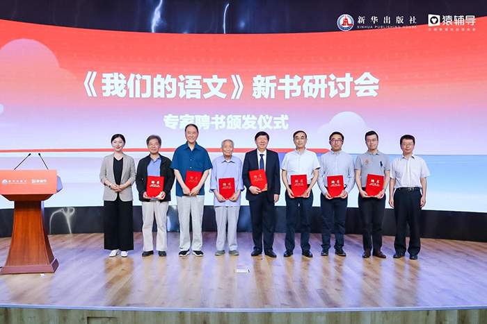 2023年6月19日,《我们的语文》新书研讨会暨新华出版社与猿辅导战略合作签约仪式在京举行。图为专家聘书颁发仪式。