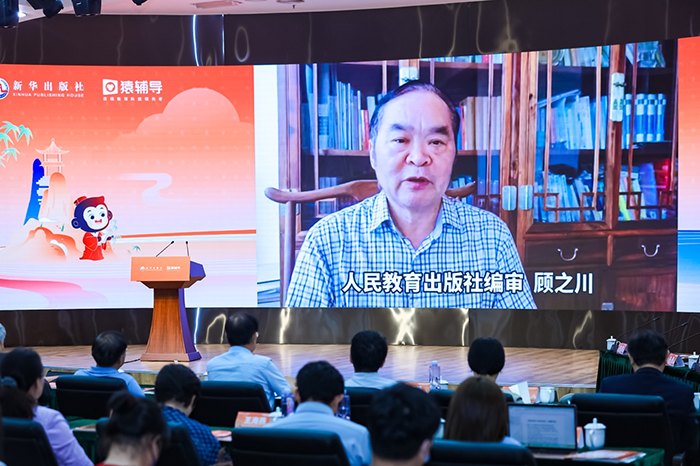 中国教育学会中学语文教学专业委员会原理事长、人民教育出版社编审顾之川以视频方式致辞,他表示,“相信这次研讨会能够进一步凝聚各位专家的教育教学智慧,将丛书打造成培根铸魂、启智增慧的精品教辅,深受广大师生和家长欢迎的阅读、写作指导用书。”