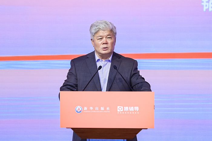 2023年6月19日,《我们的语文》新书研讨会暨新华出版社与猿辅导战略合作签约仪式在京举行。图为新华社原副社长兼常务副总编辑马胜荣发表主旨演讲。