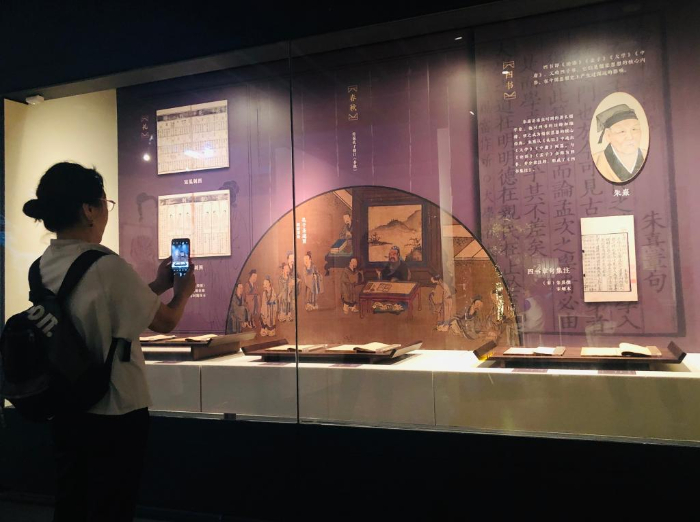 展览分为“载籍荟萃”“斯文在兹”“薪火相传”三部分,从时代上看,展品囊括了唐、宋、元、明、清各个时代的珍贵典籍;从古籍分类上看,经史子集每一大类,都挑选出其代表性著作的古代版本;从装帧形式上看,展品有卷子装、经折装、包背装和线装;从印刷工艺上看,展出了采用雕版印刷、活字印刷、套版印刷和石印等多种工艺印制的古籍。