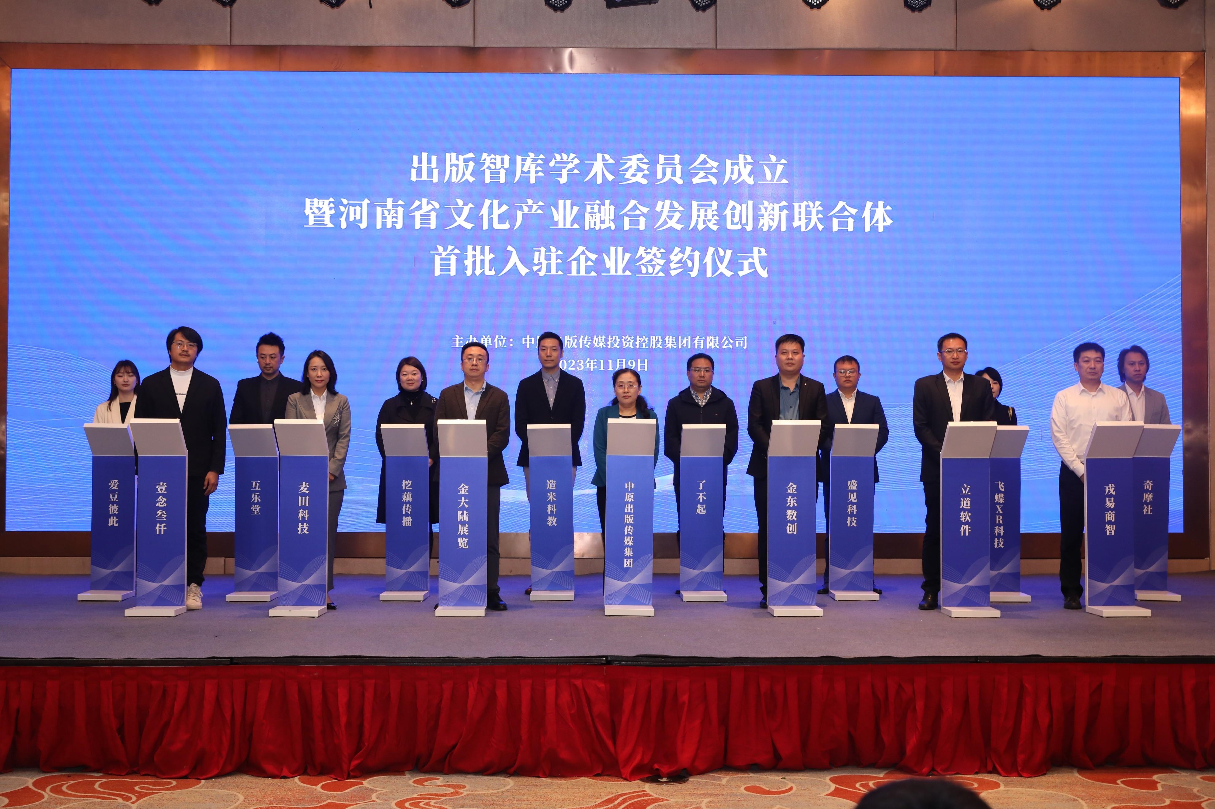 11月9日,出版智库学术委员会成立大会暨河南省文化产业融合发展创新联合体首批入驻企业签约仪式在郑州举行。中国出版协会第七届理事会理事长邬书林,江苏凤凰出版传媒股份有限公司原董事、总经理佘江涛,中原出版传媒集团党委书记、董事长、总经理王庆等领导和嘉宾出席仪式。