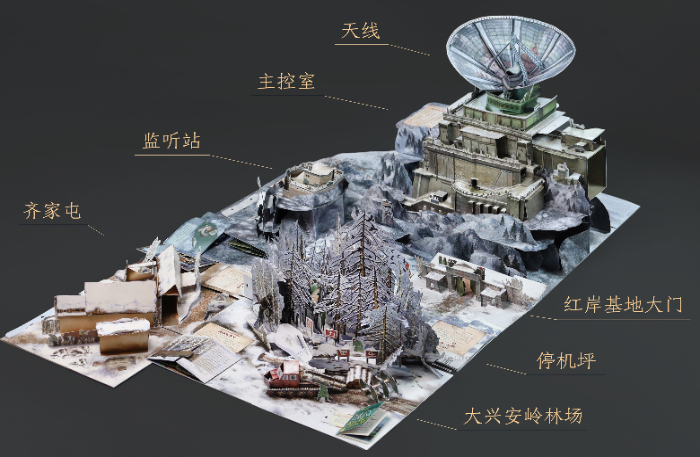 如果说《三体》是关于宇宙最狂野的想象,那《三体立体书 红岸基地》就是将这份想象转化为了可触摸、可视化的阅读体验。这本书采用全景展开的装帧方式,还原从大兴安岭林场、红岸基地、到齐家屯的整个地图,全书展开后近1.5平方米,小立体页和丰富有趣的互动机关则暗藏细节,使故事结构更为完整。为了确保立体书最终呈现出来的效果,在做立体纸艺设计的时候,施镇宇挑战立体纸艺结构画幅极限,创新性采用二段式结构,搭建出约0.5米高的红岸基地巨型天线,带来震撼的阅读体验。