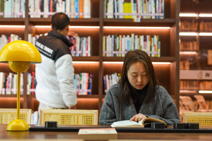 1月4日,读者在江西省宜春市袁州区珠泉街道狮子山公园城市书房内阅读。