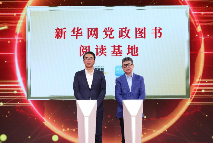 图为新华网首席运营官、新华炫闻(北京)移动传媒科技有限公司董事长、总裁孙巍与湖南省新华书店党委书记、董事长沈剑锋共同启动湖南省新华书店“新华网党政阅读基地”授牌仪式。