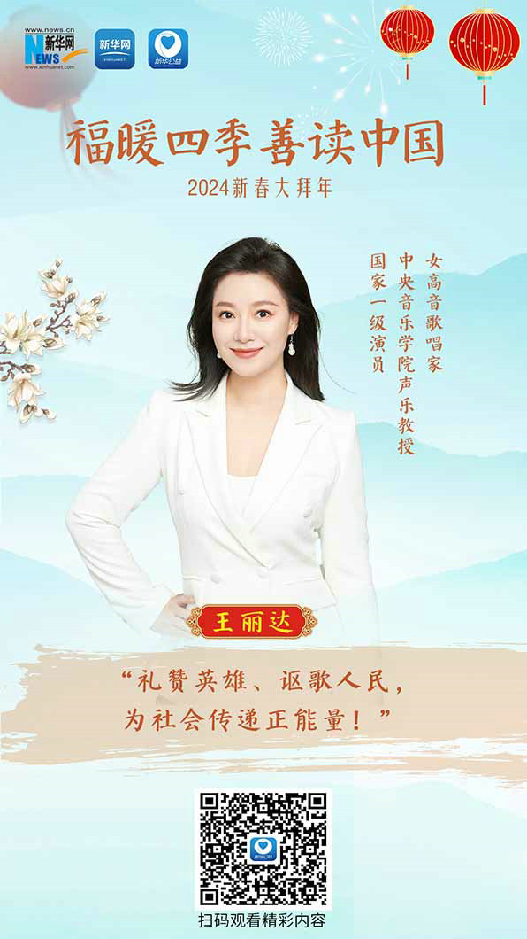 玉兔辞旧,龙腾盛世。新春佳节到来之际,女高音歌唱家、中央音乐学院声乐教授、国家一级演员王丽达祝大家龙年大吉,龙气冲天,阖家幸福!