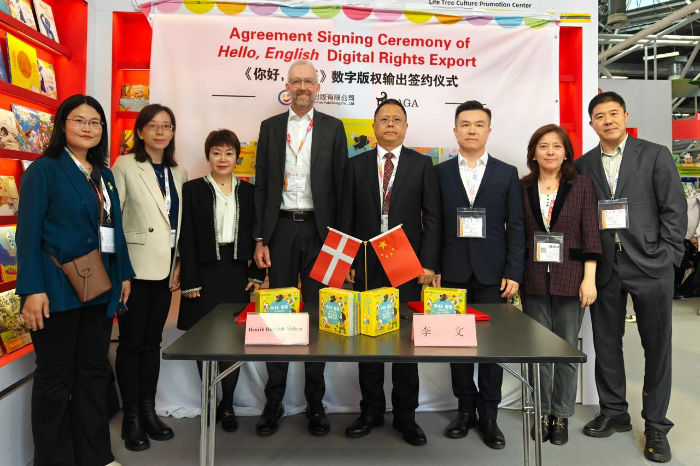 意大利当地时间4月8日上午,童趣出版有限公司在意大利博洛尼亚国际儿童书展举办了《你好,英语》数字版权输出签约仪式。童趣出版有限公司董事长李文先生与SAGA 公司签约代表亨瑞克·赫耶肖特·尼尔森先生进行了发言并代表合作双方在合约上签字。
