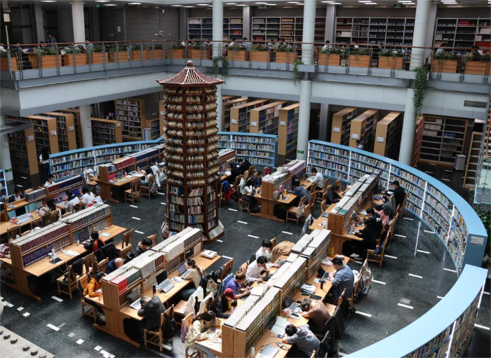北京大学图书馆内景(2024年4月8日摄)。