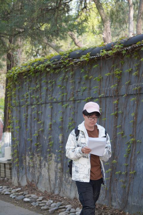 2024年4月9日,一名学生路过北京大学燕南园时边走边阅读。