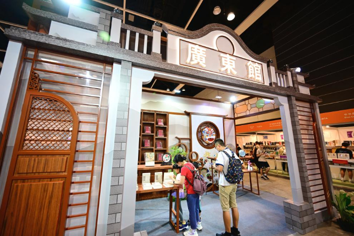 广东省主题展区内还特地展出端砚、广绣、广彩等数十种代表岭南文化的艺术品。“粤港两地文化同宗同源,将两地共同的文化符号转化成文创产品,可以令香港市民更直观地感受粤港两地文化的融通与共鸣。”南方出版传媒股份有限公司国际部总监陈斌说。