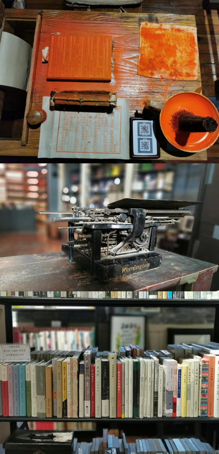 模范书局中的“模”即“字模”,“范”即盛字模的托盘。模范书局内展陈着种类丰富的器物、非遗手作、现当代艺术作品等,包括大量中国古代雕版,在多年的刻书经历中,逐渐积累形成“模范草窗字库”,人们可以在店内体会雕版印刷的乐趣。店内藏书丰富,不仅涵盖了“文、史、哲、艺术”四大类,还特藏有店主精心收集的签名版、毛边版书籍,甚至是一些市面上已难觅踪迹的绝版书籍。
