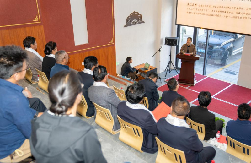 9月13日,西藏大学次旦扎西教授在现场进行主旨发言。