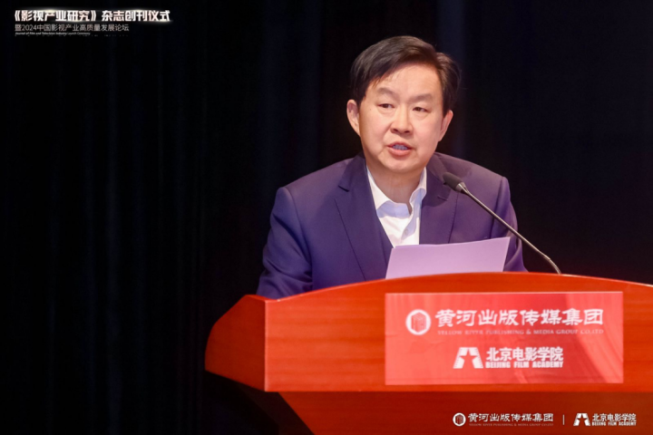 黄河出版传媒集团党委书记、总经理、总编辑薛文斌在致辞中表示,《影视产业研究》既是校企合作共建学术高地、创新学术体系、迭代产业发展的一次重要探索,也是黄河出版传媒集团与北京电影学院自觉担负使命任务,构建中国学术话语体系的创新举措。他从刊物的权威性、创造性、发展性、延展性等方面阐述了刊物创办的重要意义。薛文斌表示,未来,黄河出版传媒集团将通过期刊出版与学术研究的紧密结合和实践探索,与北京电影学院一道打造经得起历史检验、学术检验的专业领域头部刊物,共同为创建中国特色影视产业学术理论体系、服务社会主义文化强国建设作出新的更大贡献。目前,黄河出版传媒集团已在北京设立编辑部,集中力量为刊物的出版提供优质的编辑保障,努力使《影视产业研究》成为学术建设的高地、人才培育的摇篮。