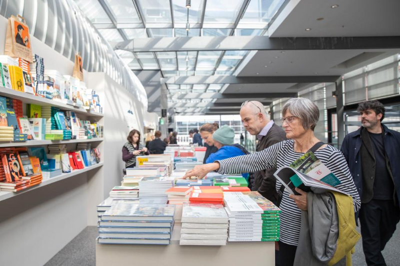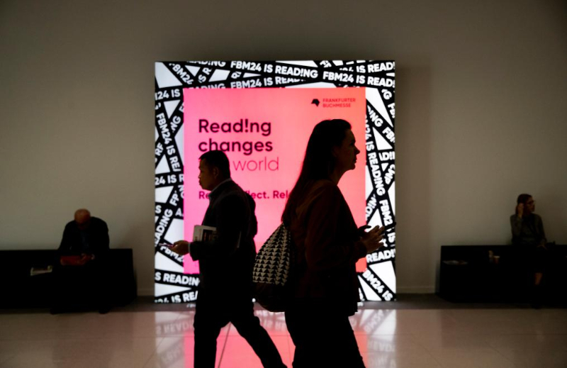 10月16日,人们在德国法兰克福书展上阅读图书。