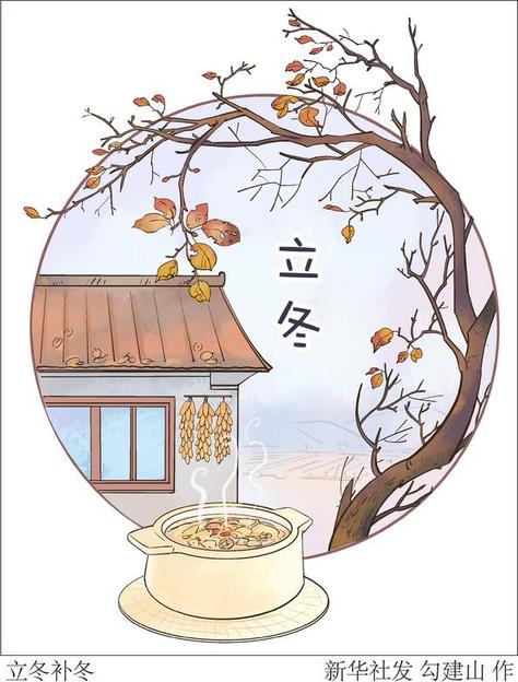立冬时节,各地有丰富多彩的传统习俗。比如,民间有祭祖、饮宴、卜岁等习俗,以时令佳品向祖灵祭祀,祈求来年是丰年;还有“补冬”,北方有“立冬补冬,补嘴空”的谚语,人们习惯在立冬这天吃饺子,因为饺子外形似耳朵,人们认为吃了它,冬天耳朵就不受冻。此外,还有酿黄酒、吃生葱等。