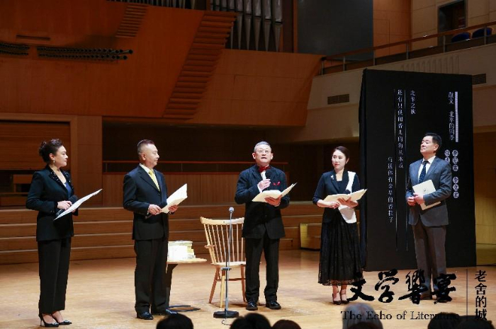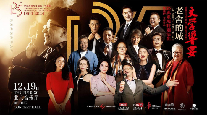 12月19日,一场独特的文学“响”宴在北京音乐厅举行。这是一期以老舍为文化主题的诗文雅集,一个关于历史文化名城北京的年度盛典。在总导演陈薪伊的引领下,濮存昕、斯琴高娃、史可、陶虹、春妮、季冠霖、李立宏、任志宏、徐涛、大山、李洪涛、小柯、张树荣等众多著名艺术家,共同诵读老舍先生的经典名作,向这位伟大的人民艺术家致敬。