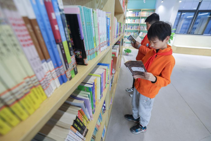 12月18日,学生们在嘉兴市南湖区余新镇中心小学图书馆的“老少阅读攀登合作社图书漂流站”读书。新华社记者 徐昱 摄