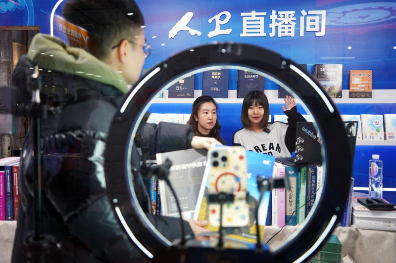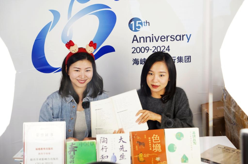 1月9日,两名主播在直播推介图书。