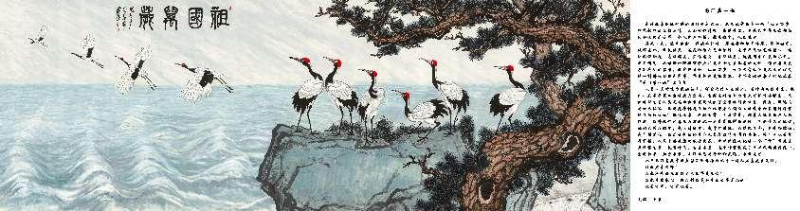君寿所作巨幅画作《“祖国万岁”松鹤献瑞》现展示于北京国际机场的贵宾厅。鹤鸣九皋,扶摇云霄,以巨幅形制彰显磅礴气象,松骨苍劲如铁、仙鹤翩跹其间,或引吭长鸣、或振翅欲翔,既承传统祥瑞之意,又赋 “松鹤同春” 以时代诠释,墨色浓淡间见笔力千钧,既是对传统文化符号的创造性转化,更以艺术语言深情礼赞祖国。