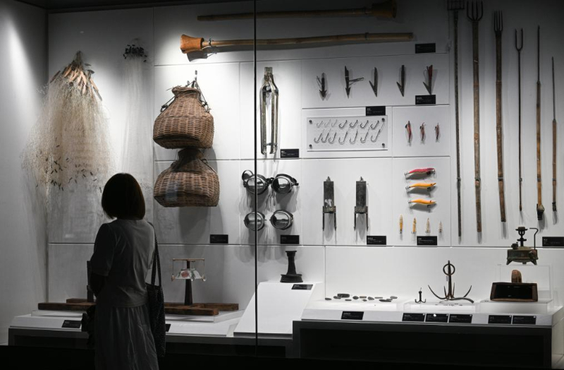 5月13日在海南疍家博物馆拍摄的疍家人用于生产的各式工具。