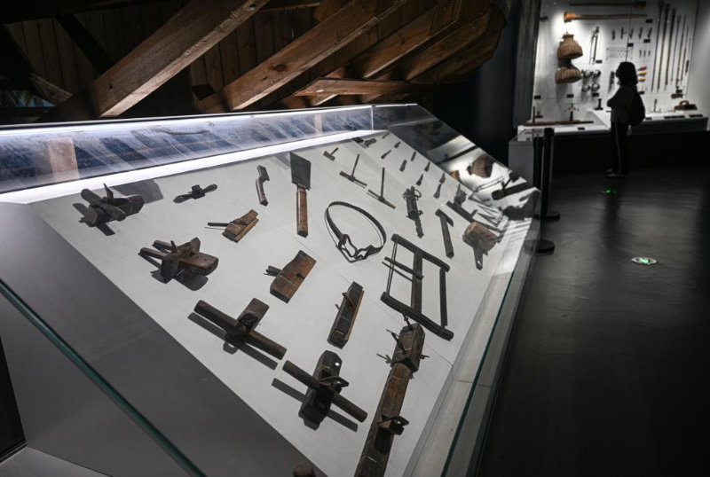5月13日在海南疍家博物馆拍摄的疍家人用于造船的各式工具。